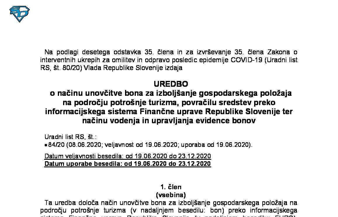 Uporaba od: 19.06.2020 Uporaba do: 23.12.2020 Datum vpisa: 09.06.2020 |