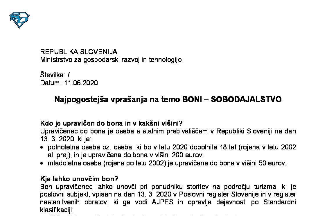 Najpogostejša vprašanja na temo BONI – Splošno, ponudniki nastanitev, uporabniki bonov 18.08.2020