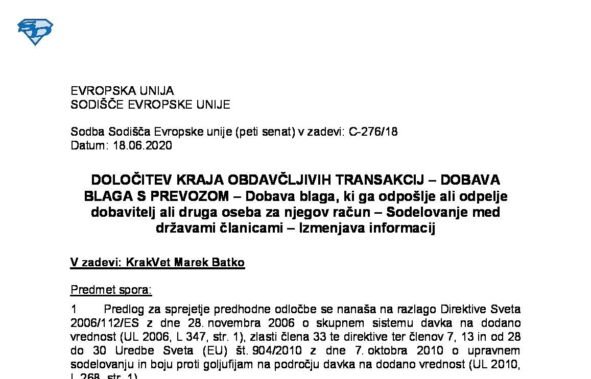 OPROSTITEV V ZVEZI Z DAJANJEM KREDITOV – OPROSTITEV V ZVEZI S FINANČNIMI TRANSAKCIJAMI – IZTERJAVA DOLGOV – Faktoring s prodajo terjatev – Faktoring z zastavno pravico (C-232/24) 23.10.2025 28.10.2025