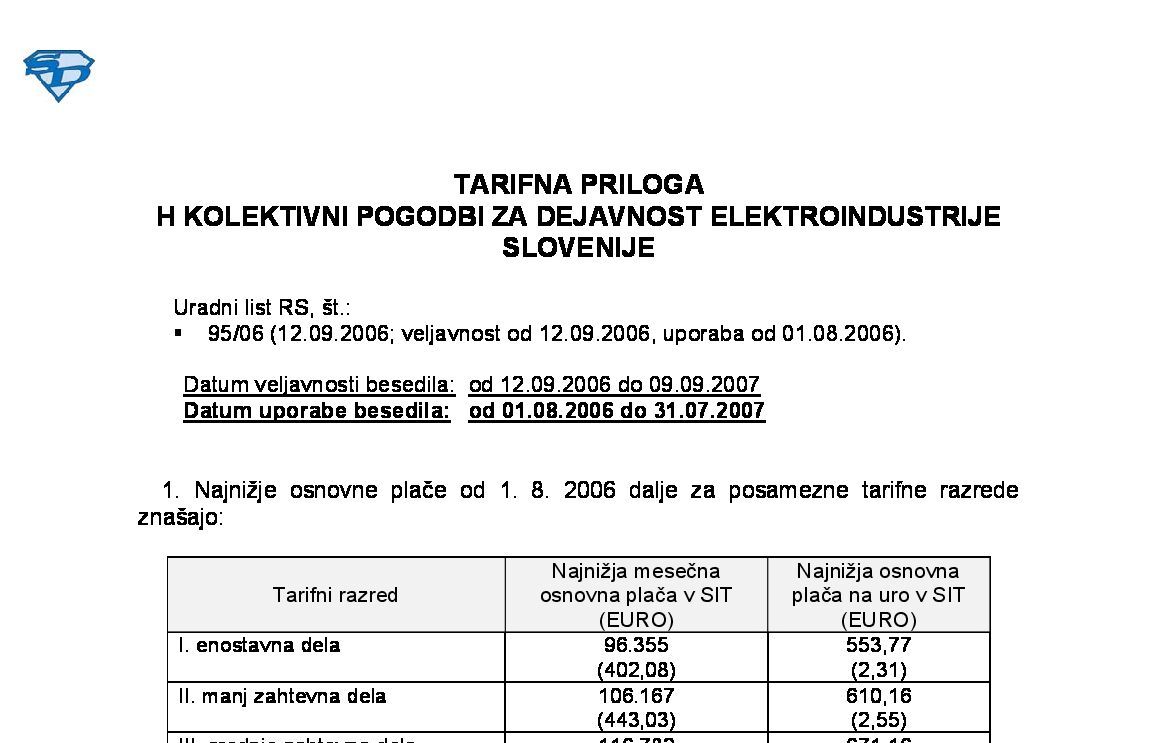 Posebnost uporabe - 3. točka tarifne priloge se uporablja od začetka izplačevanja regresa za letni dopust za leto 2006. Članek nima prilog!