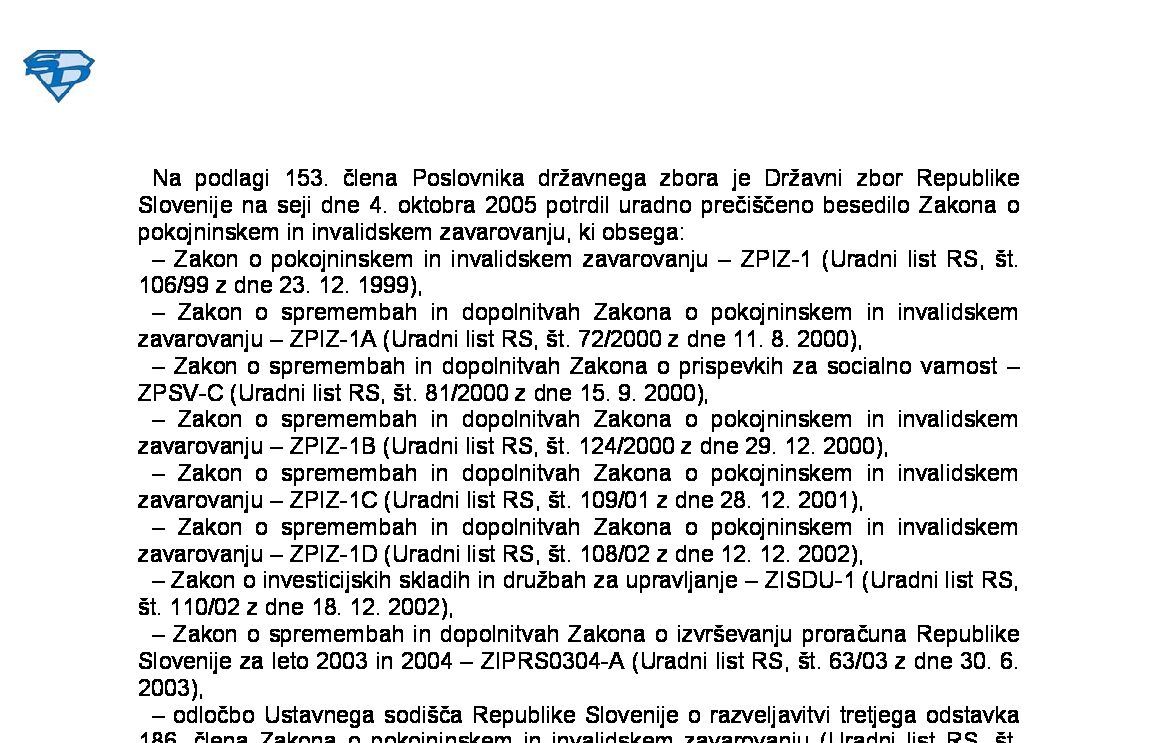 ZAKON O POKOJNINSKEM IN INVALIDSKEM ZAVAROVANJU (ZPIZ-2 - neuradno prečiščeno besedilo) 01.01.2026 [!] 20.11.2025