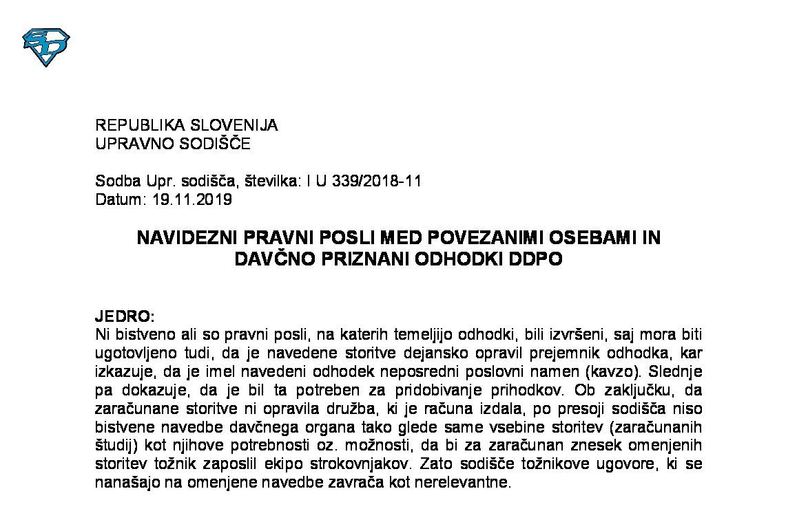DDPO IN PREKLUZIJA DOKAZOV – Davčno priznan odhodek – Rezervacije – Prikrito izplačilo dobička (I U 652/2021-12) 15.07.2024 30.01.2025