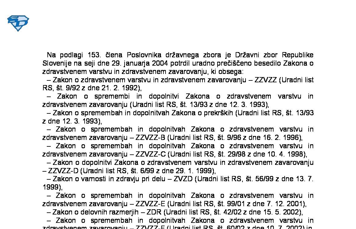 | ZAKON O ZDRAVSTVENEM VARSTVU IN ZDRAVSTVENEM ZAVAROVANJU (ZZVZZ - neuradno prečiščeno besedilo) | 01.04.2022 | [!] | 25.07.2022 | 31.03.2022 |