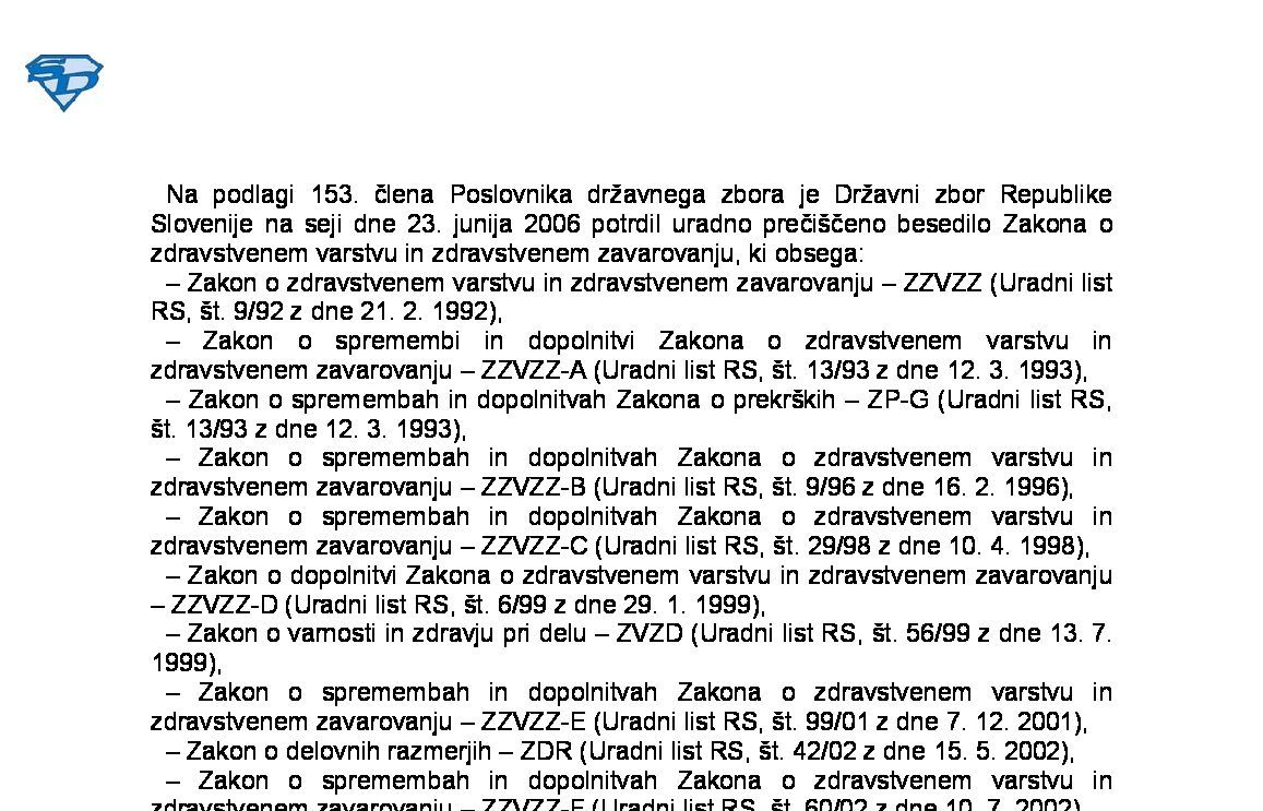 ZAKON O ZDRAVSTVENEM VARSTVU IN ZDRAVSTVENEM ZAVAROVANJU (ZZVZZ - neuradno prečiščeno besedilo) 21.05.2025 13.05.2025