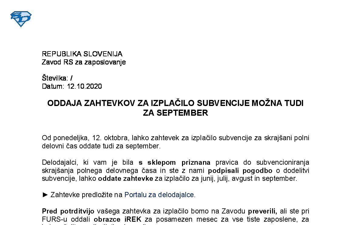 NADOMESTILO STROŠKOV PLAČE ZA SAMOZAPOSLENE V KARANTENI 09.11.2021 16.11.2021