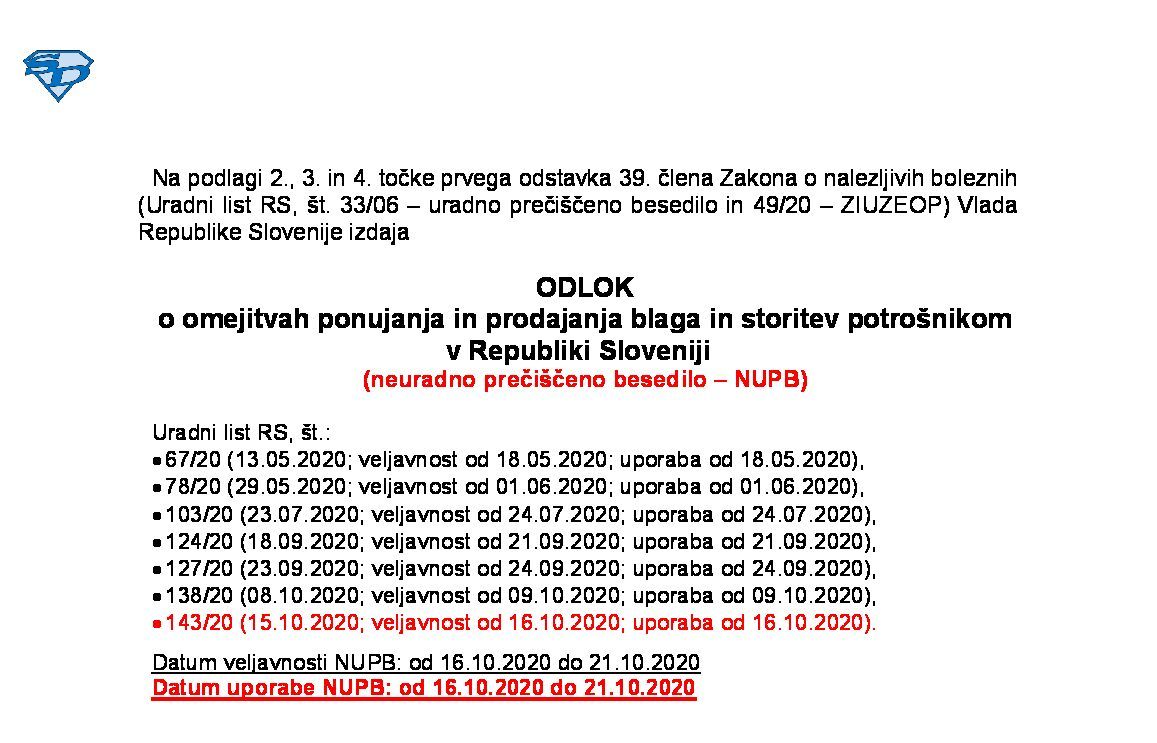 Sklep o uporabi ukrepov, ki jih določa Zakon o nalezljivih boleznih, pri nalezljivi bolezni COVID-19 04.09.2020 04.09.2020