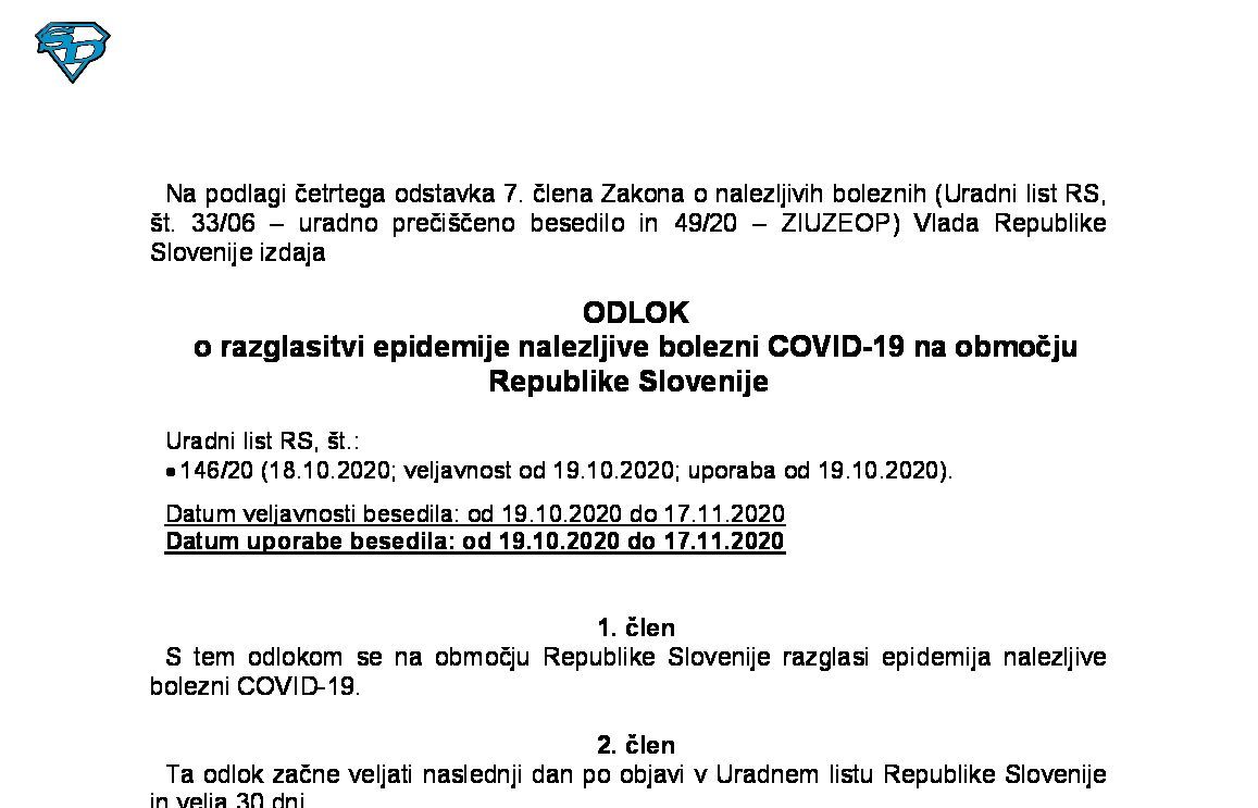 Sklep o uporabi ukrepov, ki jih določa Zakon o nalezljivih boleznih, pri nalezljivi bolezni COVID-19 04.09.2020 04.09.2020