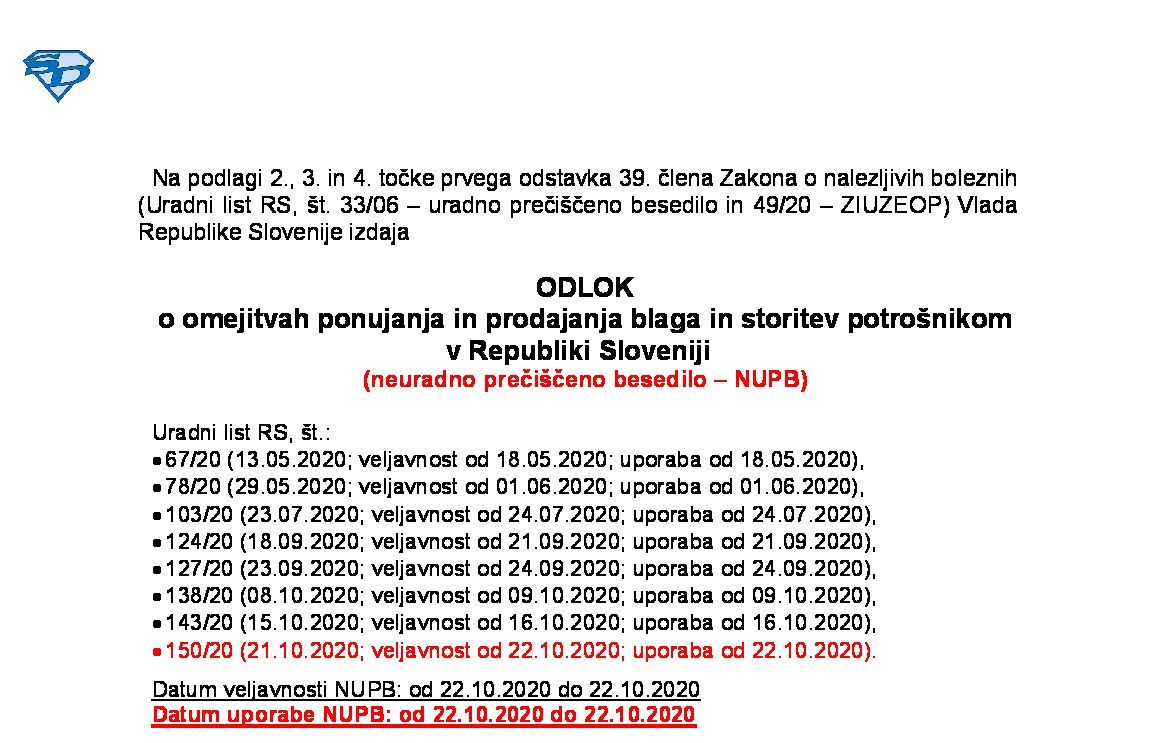 Sklep o uporabi ukrepov, ki jih določa Zakon o nalezljivih boleznih, pri nalezljivi bolezni COVID-19 04.09.2020 04.09.2020