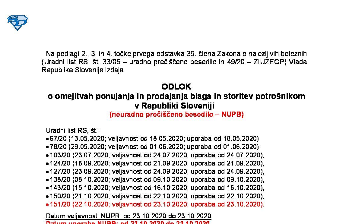 Sklep o uporabi ukrepov, ki jih določa Zakon o nalezljivih boleznih, pri nalezljivi bolezni COVID-19 04.09.2020 04.09.2020