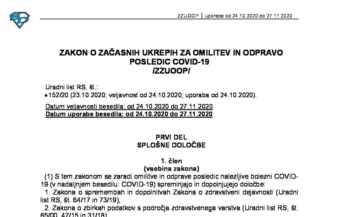 | ZAKON O INTERVENTNIH UKREPIH ZA POMOČ PRI OMILITVI POSLEDIC DRUGEGA VALA EPIDEMIJE COVID-19 (ZIUPOPDVE - neuradno prečiščeno besedilo) | 01.01.2023 | 30.12.2023 | 20.12.2022 | |