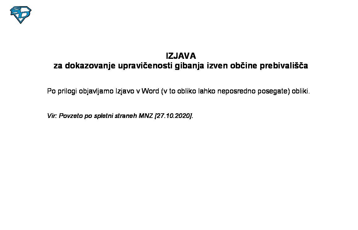 Članek nima posebnosti! Vzorec - Izjava za dokazovanje upravičenosti gibanja izven občine prebivališča.docx