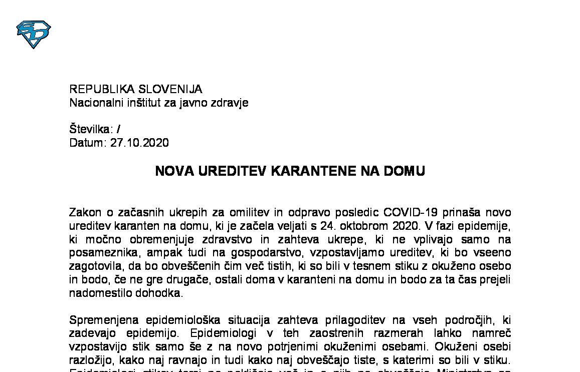NADOMESTILO STROŠKOV PLAČE ZA SAMOZAPOSLENE V KARANTENI 09.11.2021 16.11.2021