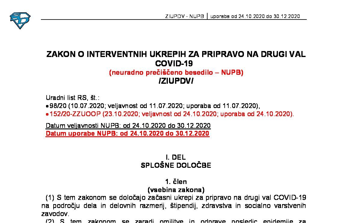 ZAKON O INTERVENTNIH UKREPIH ZA POMOČ PRI OMILITVI POSLEDIC DRUGEGA VALA EPIDEMIJE COVID-19 (ZIUPOPDVE - neuradno prečiščeno besedilo) 31.12.2023 16.02.2024