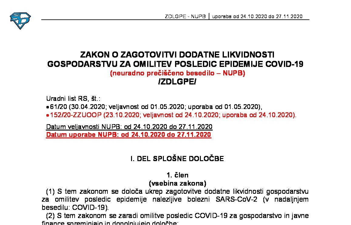 ZAKON O INTERVENTNIH UKREPIH ZA POMOČ PRI OMILITVI POSLEDIC DRUGEGA VALA EPIDEMIJE COVID-19 (ZIUPOPDVE - neuradno prečiščeno besedilo) 31.12.2023 16.02.2024