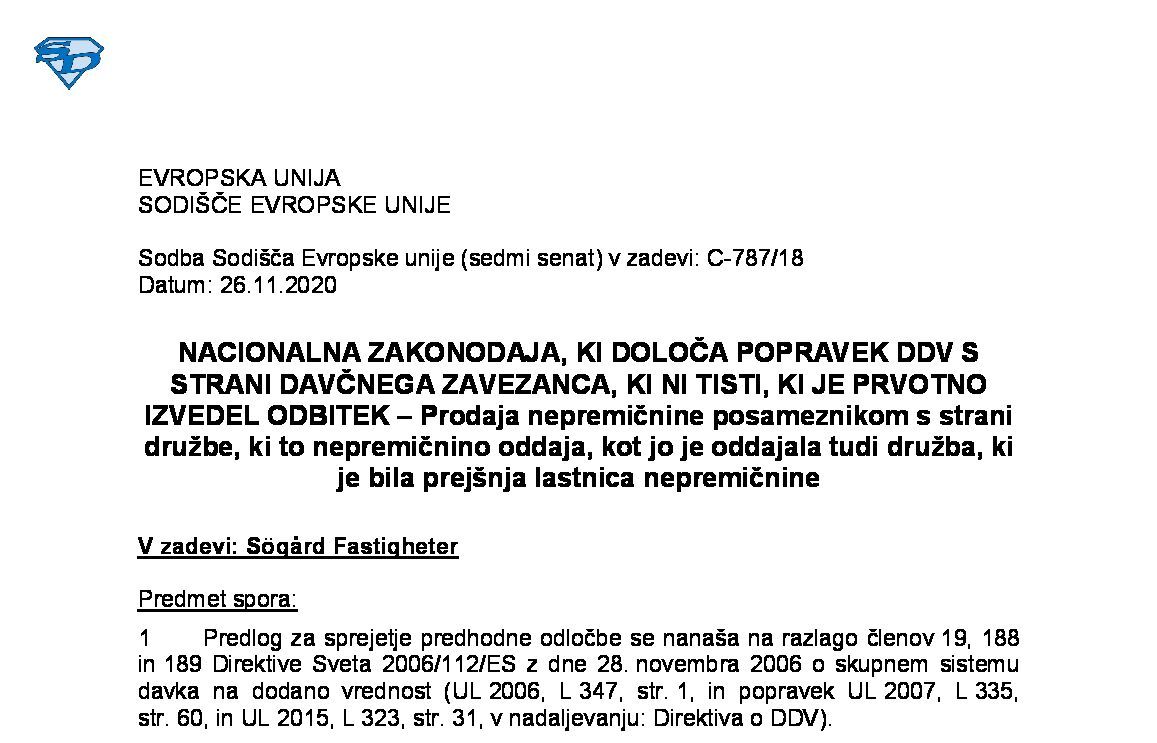 POJEM DAVČNI ZAVEZANEC – DRUŽBENIKI DRUŽBE CIVILNEGA PRAVA BREZ PRAVNE OSEBNOSTI – Določitev davčnega zavezanca, ki je dolžan plačati davek (C-796/23) 11.12.2025 15.12.2025