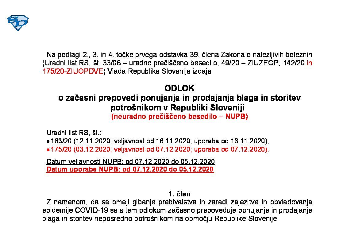 Spremenjeni Odlok se ni začel uporabljati – veza – nova objava Odloka v UL RS, št. 181/20.