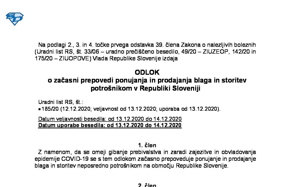 Sklep o uporabi ukrepov, ki jih določa Zakon o nalezljivih boleznih, pri nalezljivi bolezni COVID-19 04.09.2020 04.09.2020
