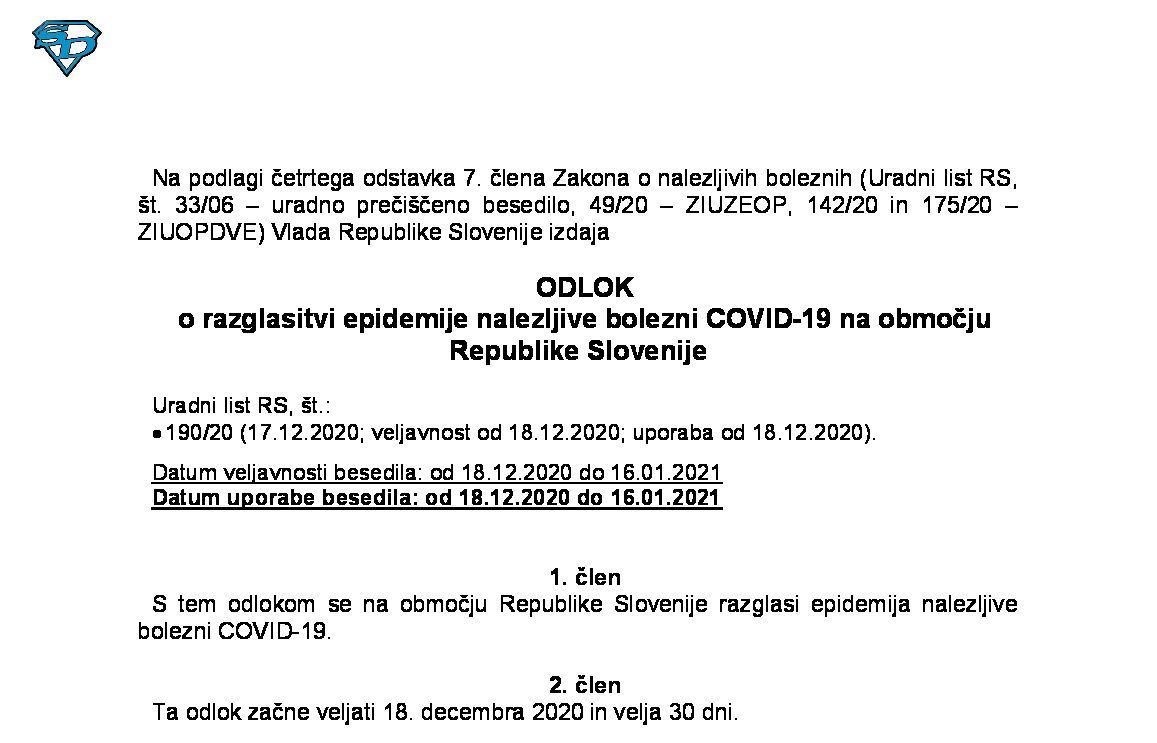 Sklep o uporabi ukrepov, ki jih določa Zakon o nalezljivih boleznih, pri nalezljivi bolezni COVID-19 04.09.2020 04.09.2020