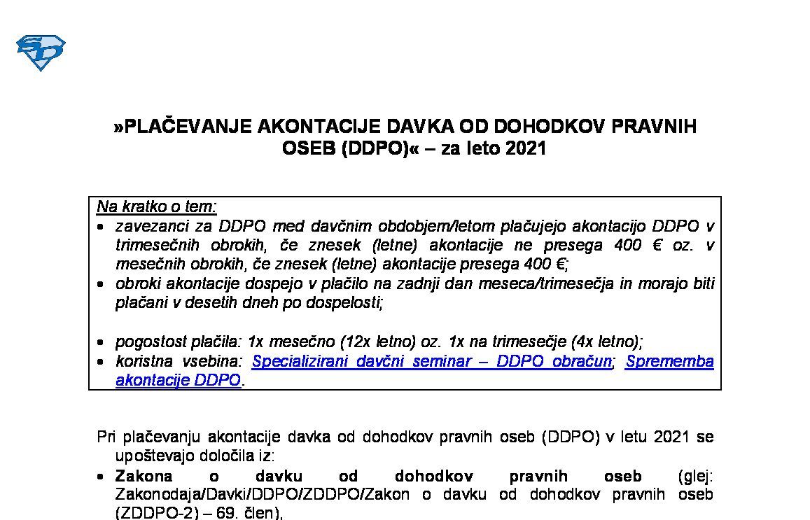 PLAČEVANJE AKONTACIJE DAVKA OD DOHODKOV PRAVNIH OSEB (DDPO) – za leto 2026 11.12.2025