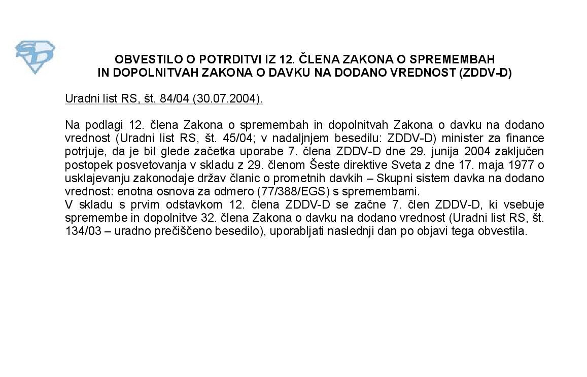 Obvestilo se nanaša na drugi odstavek 32. člena ZDDV - uporaba člena od 31.07.2004 naprej.