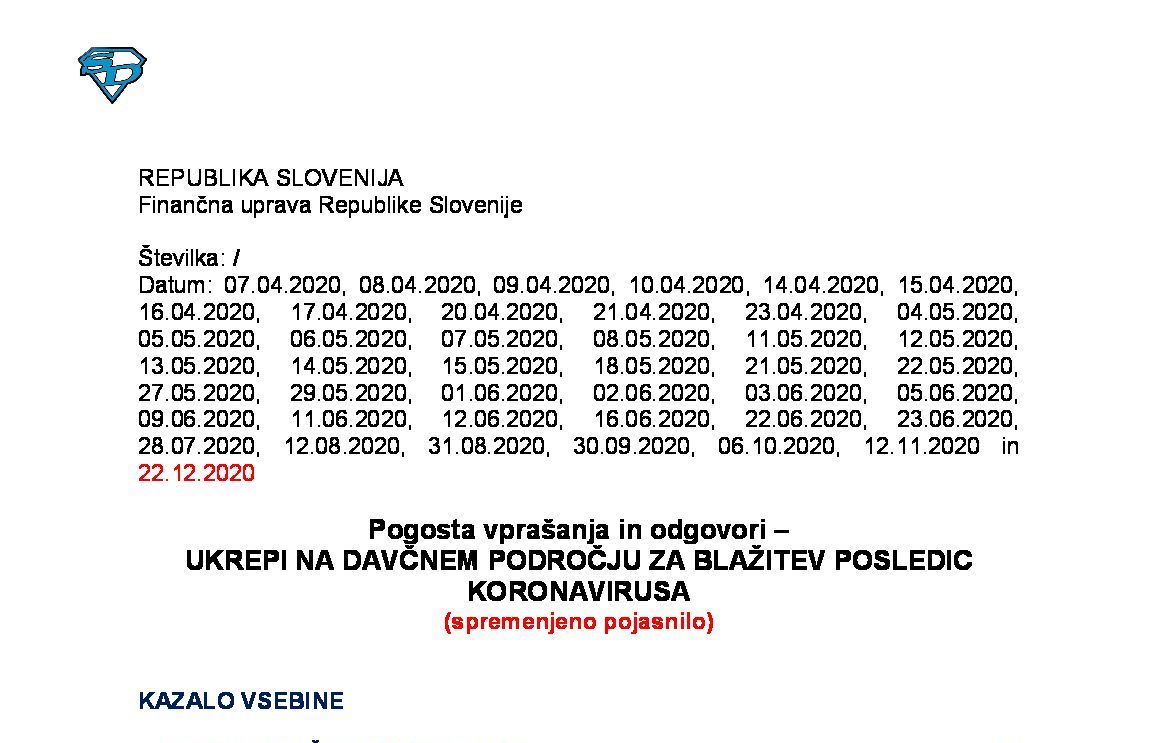 Pogosta vprašanja in odgovori – V ZVEZI Z UKREPI PKP10 NA DAVČNEM PODROČJU (spremenjeno pojasnilo - z dne 28.02.2022) 28.02.2022 01.03.2022