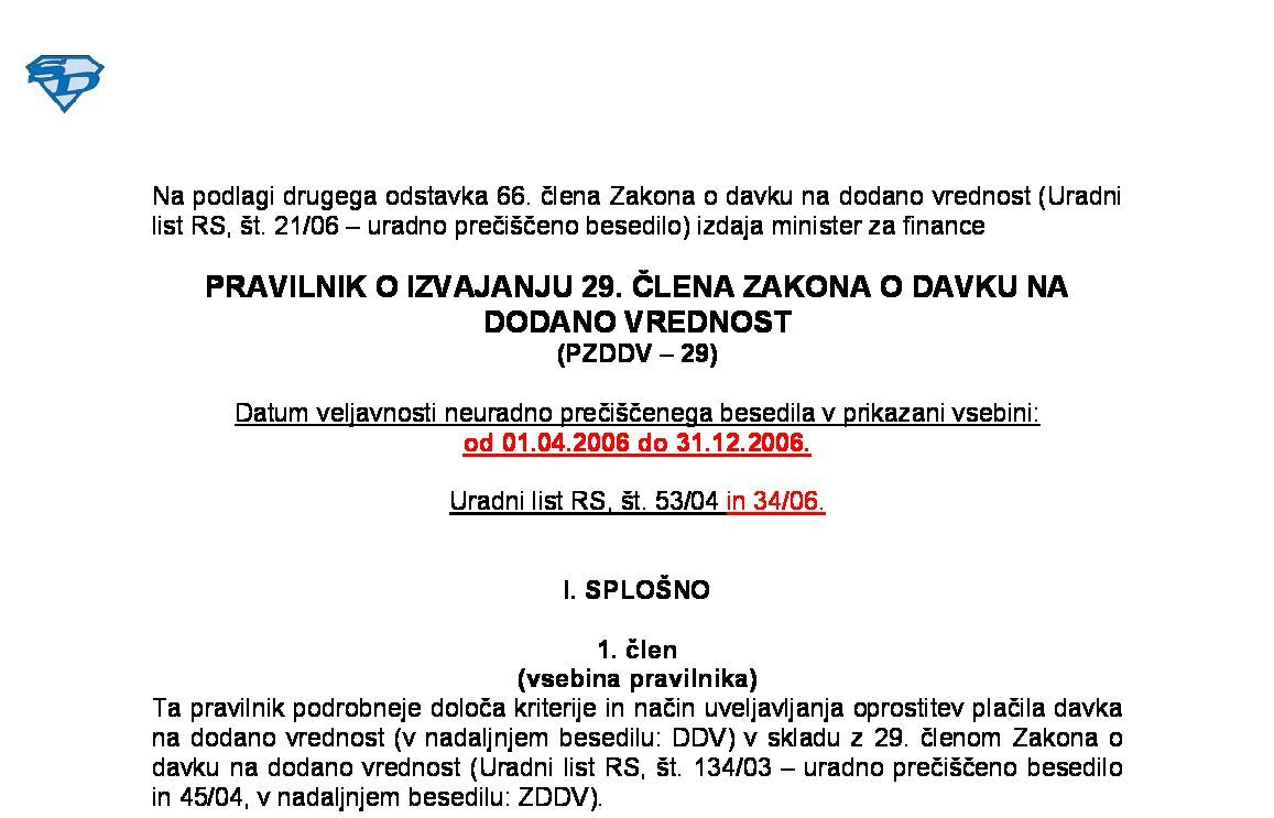 Pravilnik o izvajanju Zakona o davku na dodano vrednost (PZDDV - neuradno prečiščeno besedilo) 01.01.2025 [!] 30.12.2024