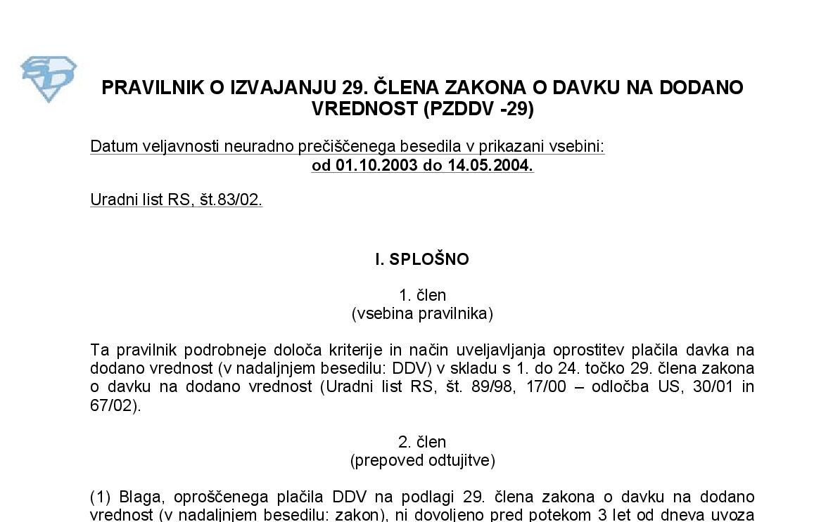 Pravilnik o izvajanju Zakona o davku na dodano vrednost (PZDDV - neuradno prečiščeno besedilo) 01.01.2025 [!] 30.12.2024