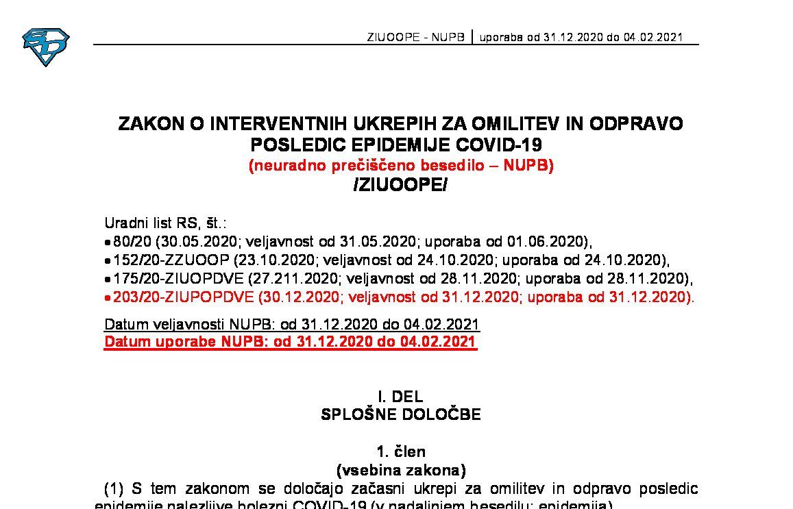 ZAKON O INTERVENTNIH UKREPIH ZA POMOČ PRI OMILITVI POSLEDIC DRUGEGA VALA EPIDEMIJE COVID-19 (ZIUPOPDVE - neuradno prečiščeno besedilo) 31.12.2023 16.02.2024