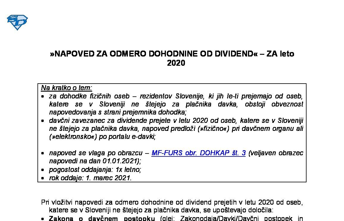 PLAČEVANJE PREDHODNE AKONTACIJE DOHODNINE / AKONTACIJE DOHODNINE OD DOHODKA IZ DEJAVNOSTI (obračun DOHDej) – v letu 2026 12.12.2025