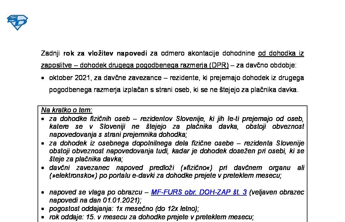 Sprememba predhodne AkDoh / AkDoh od dohodka iz dejavnosti za leto 2026 (obračun DOHDej) med davčnim letom 2026-10-01 00:00:00