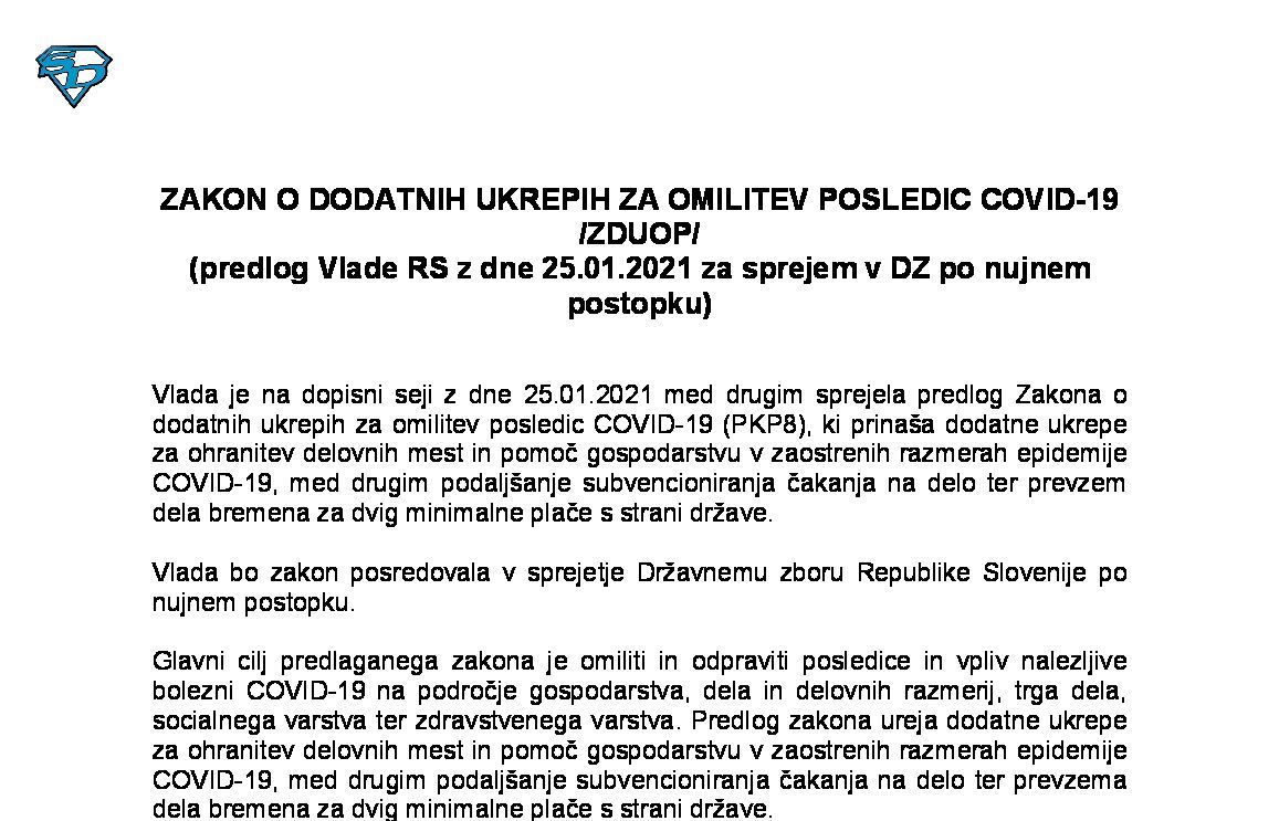 ZAKON O DODATNIH UKREPIH ZA PREPREČEVANJE ŠIRJENJA, OMILITEV, OBVLADOVANJE, OKREVANJE IN ODPRAVO POSLEDIC COVID-19 (ZDUPŠOP; predlog Vlade RS z dne 19.11.2021 za sprejem v DZ po nujnem postopku) 22.11.2021