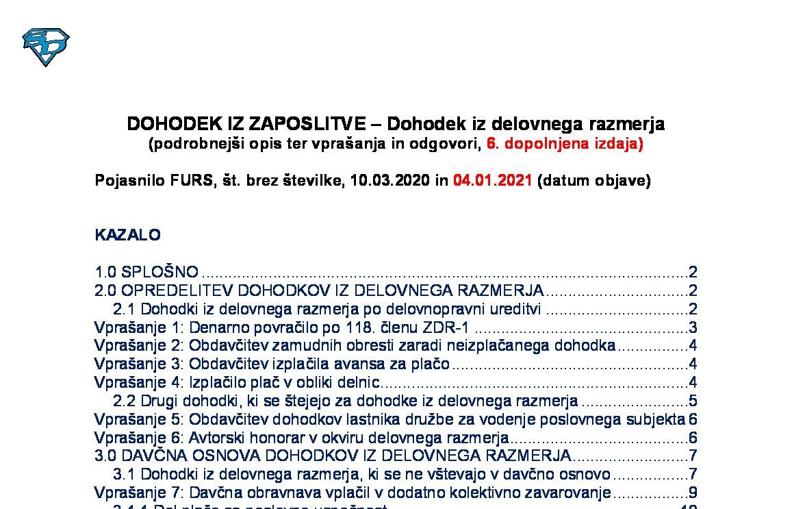 DOHODEK IZ ZAPOSLITVE – Dohodek iz delovnega razmerja (podrobnejši opis ter vprašanja in odgovori, 20. izdaja) 02.12.2025 04.12.2025
