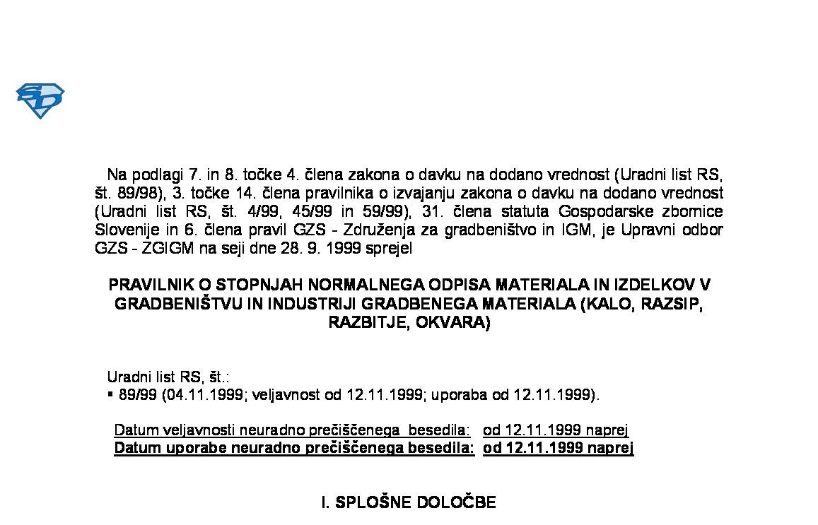 Pravilnik o stopnjah običajnega odpisa, primanjkljaja blaga in remitende (kalo, razbitje in okvara nosilcev besede, slike, zvoka) - GZS-ZKGM (neuradno prečiščeno besedilo) 01.01.2009 17.03.2009
