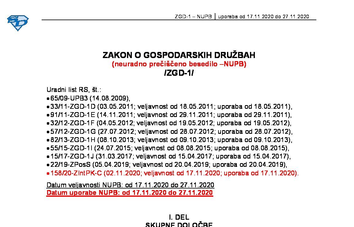 ZAKON O GOSPODARSKIH DRUŽBAH (ZGD-1 - neuradno prečiščeno besedilo) 08.10.2025 [!] 08.10.2025