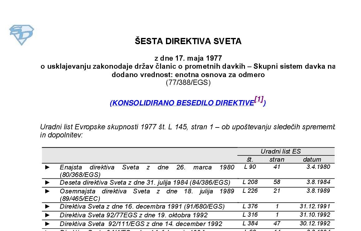 | DIREKTIVA SVETA 2006/112/ES z dne 28.11.2006 o skupnem sistemu DDV (neuradno prečiščeno besedilo - NUPB) | 20.03.2025 | 13.04.2025 | 30.03.2025 | |