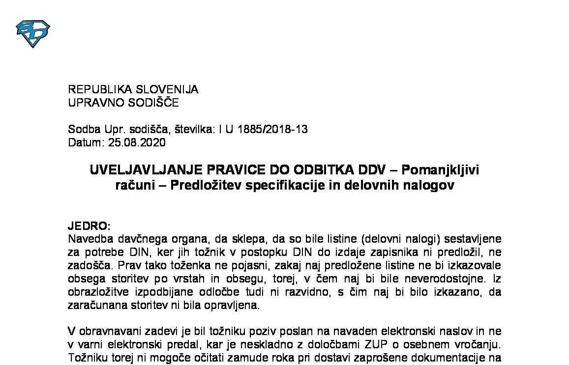 IZPOLNJEVANJE POGOJEV ZA DOBAVO BLAGA ZNOTRAJ UNIJE, OPROŠČENO PLAČILA DDV NA PODLAGI 46. ČLENA ZDDV-1 – Nepopolne CMR listine (I U 1704/2021-38) 27.11.2024 15.10.2025
