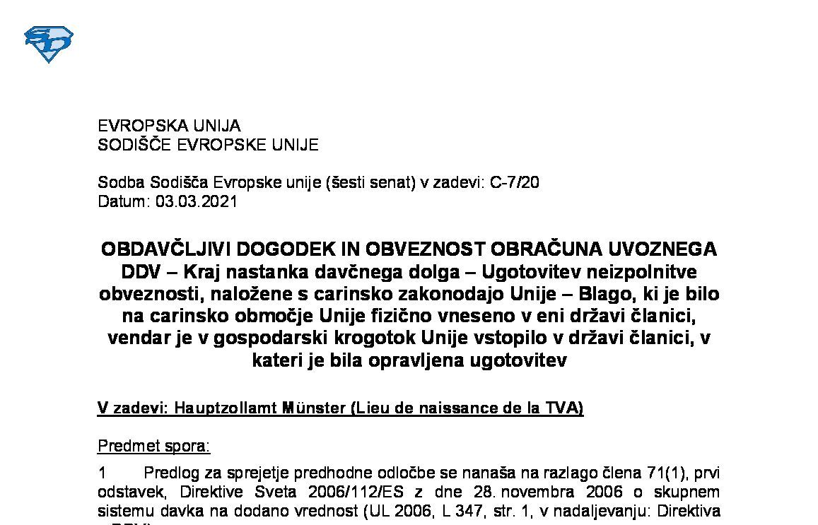 OPROSTITEV V ZVEZI Z DAJANJEM KREDITOV – OPROSTITEV V ZVEZI S FINANČNIMI TRANSAKCIJAMI – IZTERJAVA DOLGOV – Faktoring s prodajo terjatev – Faktoring z zastavno pravico (C-332/24) 23.10.2025 28.10.2025