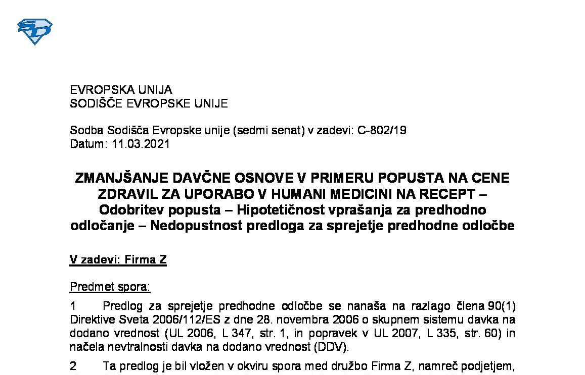 OPROSTITEV V ZVEZI Z DAJANJEM KREDITOV – OPROSTITEV V ZVEZI S FINANČNIMI TRANSAKCIJAMI – IZTERJAVA DOLGOV – Faktoring s prodajo terjatev – Faktoring z zastavno pravico (C-332/24) 23.10.2025 28.10.2025