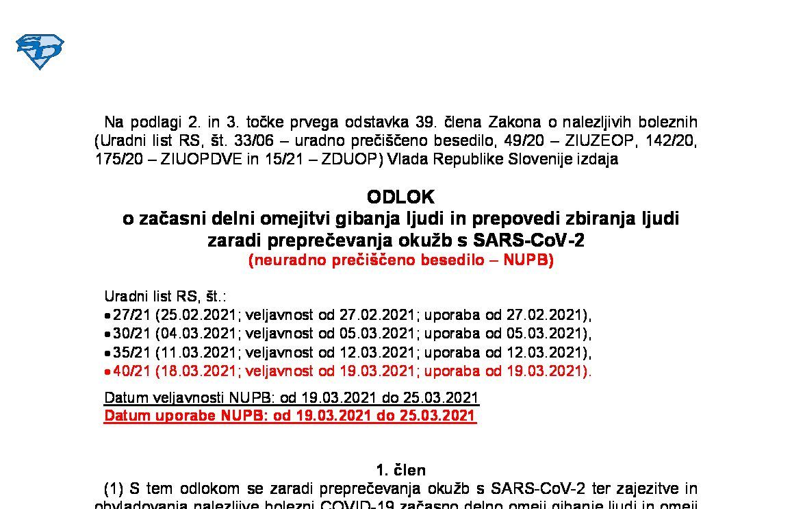 Odlok o začasnih ukrepih za preprečevanje in obvladovanje okužb z nalezljivo boleznijo COVID-19 14.05.2022 30.05.2022 17.05.2022