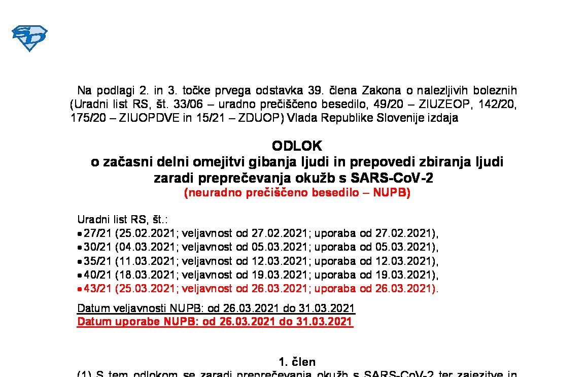 Odlok o začasnih ukrepih za preprečevanje in obvladovanje okužb z nalezljivo boleznijo COVID-19 14.05.2022 30.05.2022 17.05.2022
