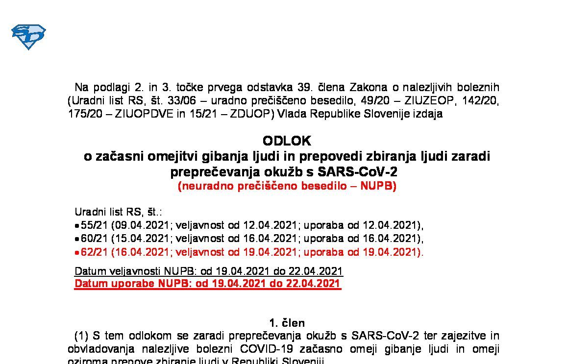 Odlok o začasnih ukrepih za preprečevanje in obvladovanje okužb z nalezljivo boleznijo COVID-19 14.05.2022 30.05.2022 17.05.2022
