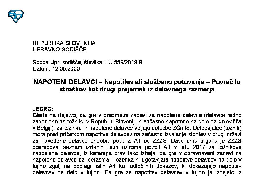 ODMERA DOHODNINE OD DOHODKA ZA DELO V TUJINI – Dokazovanje dejanske dnevne prisotnosti za delo v tujini (II U 115/2023-16) 19.02.2025 04.11.2025