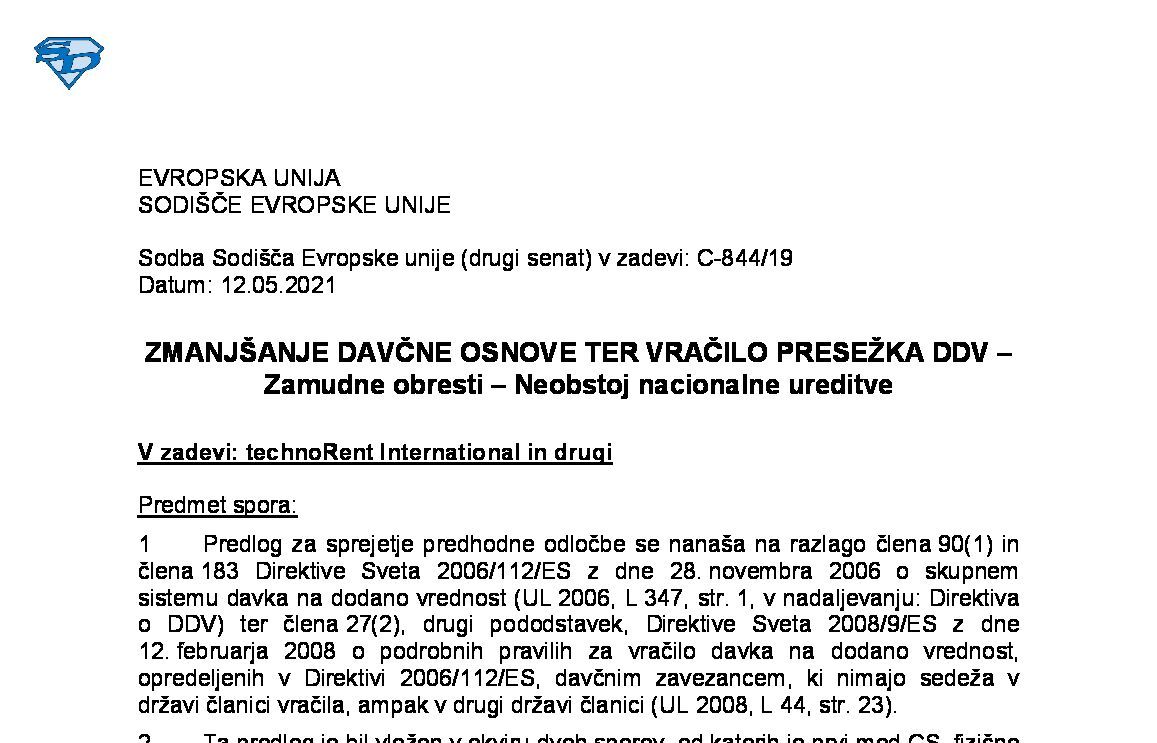 VRAČILO DDV DAVČNIM ZAVEZANCEM, KI NIMAJO SEDEŽA V DRŽAVI ČLANICI VRAČILA – GLAVNA IN POMOŽNA STORITEV – UMETNA DELITEV ENOTNE STORITVE – Neobstoj premestitve predmeta dobave (C-234/24) 23.10.2025 24.10.2025