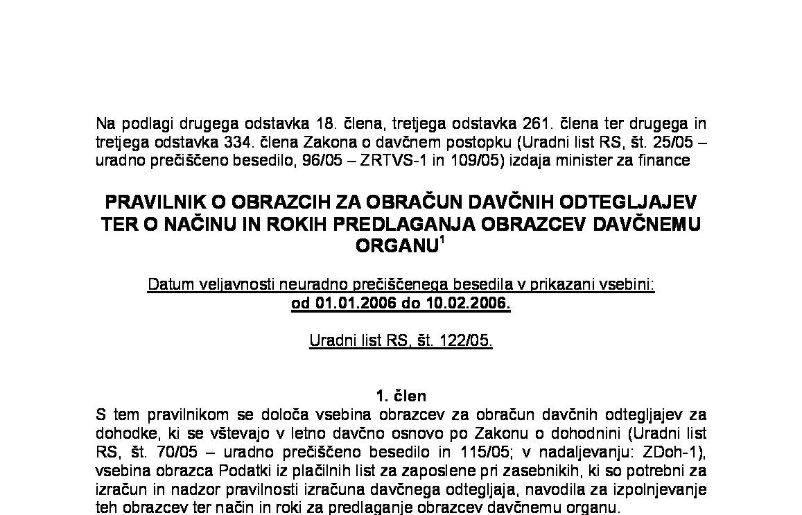Pravilnik o obrazcih za napovedi za odmero akontacije dohodnine ter obrazcih za napovedi za odmero dohodnine od dohodka iz kapitala in dohodka iz oddajanja premoženja v najem (NUPB - neuradno prečiščeno besedilo) 20.12.2025 [!] 23.12.2025