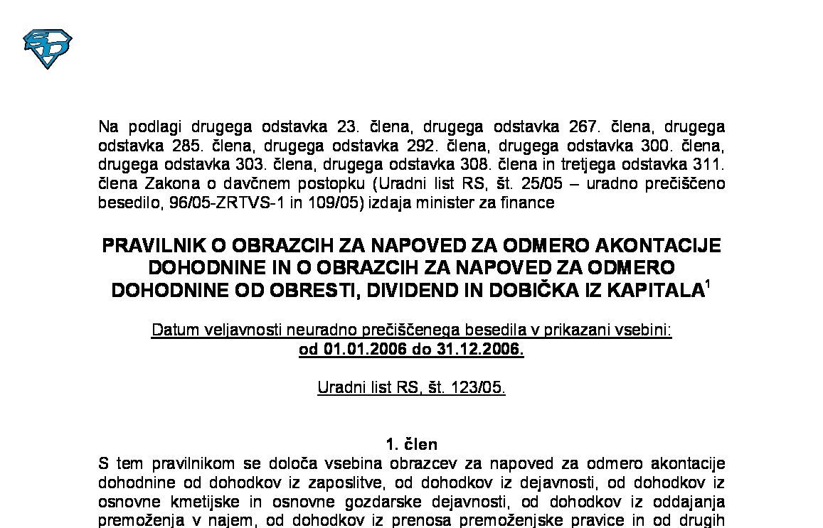 Pravilnik o vsebini in obliki obračuna davčnih odtegljajev ("REK obrazci" - neuradno prečiščeno besedilo) 01.07.2025 [!] 26.05.2025