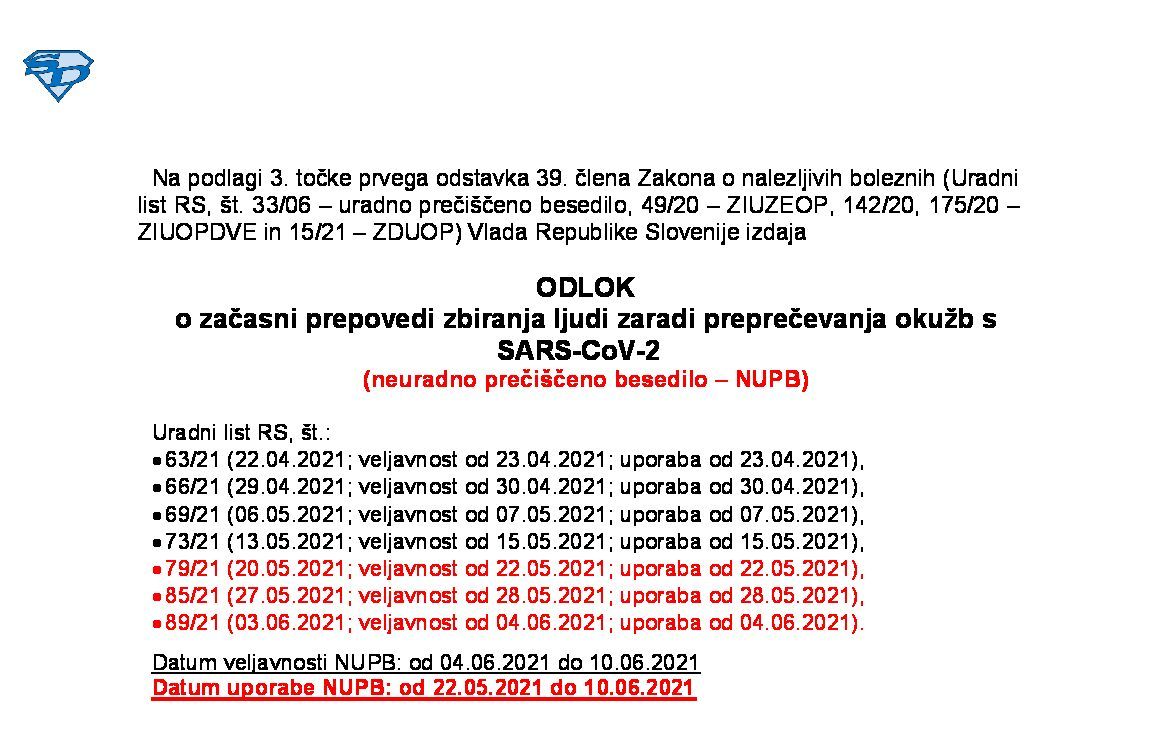 Odlok o začasnih ukrepih za preprečevanje in obvladovanje okužb z nalezljivo boleznijo COVID-19 14.05.2022 30.05.2022 17.05.2022
