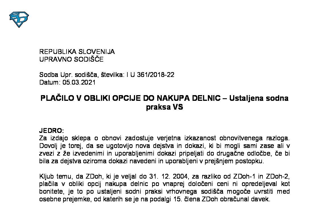 PREJEM POSLOVNEGA DELEŽA V DRUŽBI OB ANGAŽIRANJU PRI SANACIJI DRUŽBE – Darilo, ki se obdavčuje po ZDDD, ali dohodek obdavčen po ZDoh-2 (I U 1495/2022-13) 20.11.2024 10.07.2025