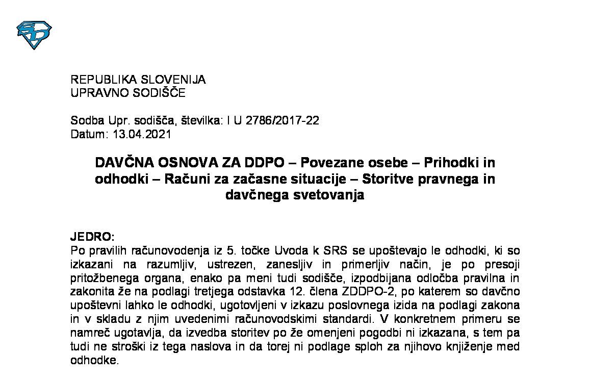 VERODOSTOJNA KNJIGOVODSKA LISTINA – Potni nalog – Dokazovanje nastanka poslovnega dogodka (I U 1898/2021-11) 21.05.2024 14.04.2025