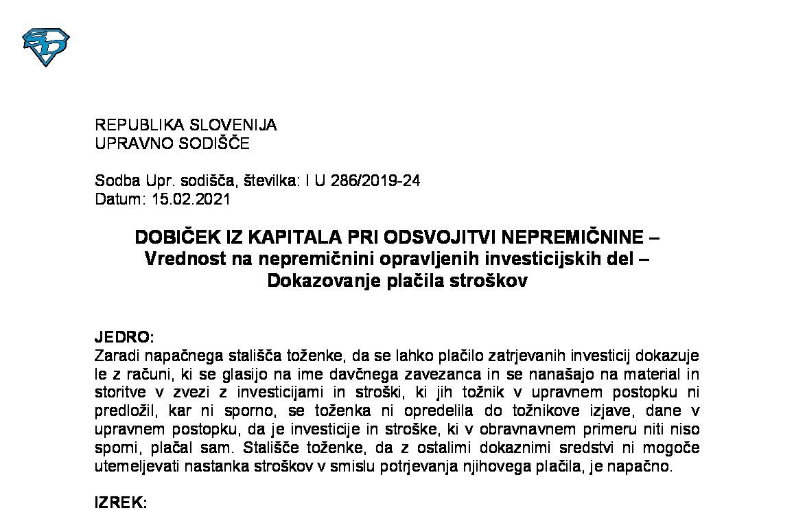 PREJEM POSLOVNEGA DELEŽA V DRUŽBI OB ANGAŽIRANJU PRI SANACIJI DRUŽBE – Darilo, ki se obdavčuje po ZDDD, ali dohodek obdavčen po ZDoh-2 (I U 1495/2022-13) 20.11.2024 10.07.2025