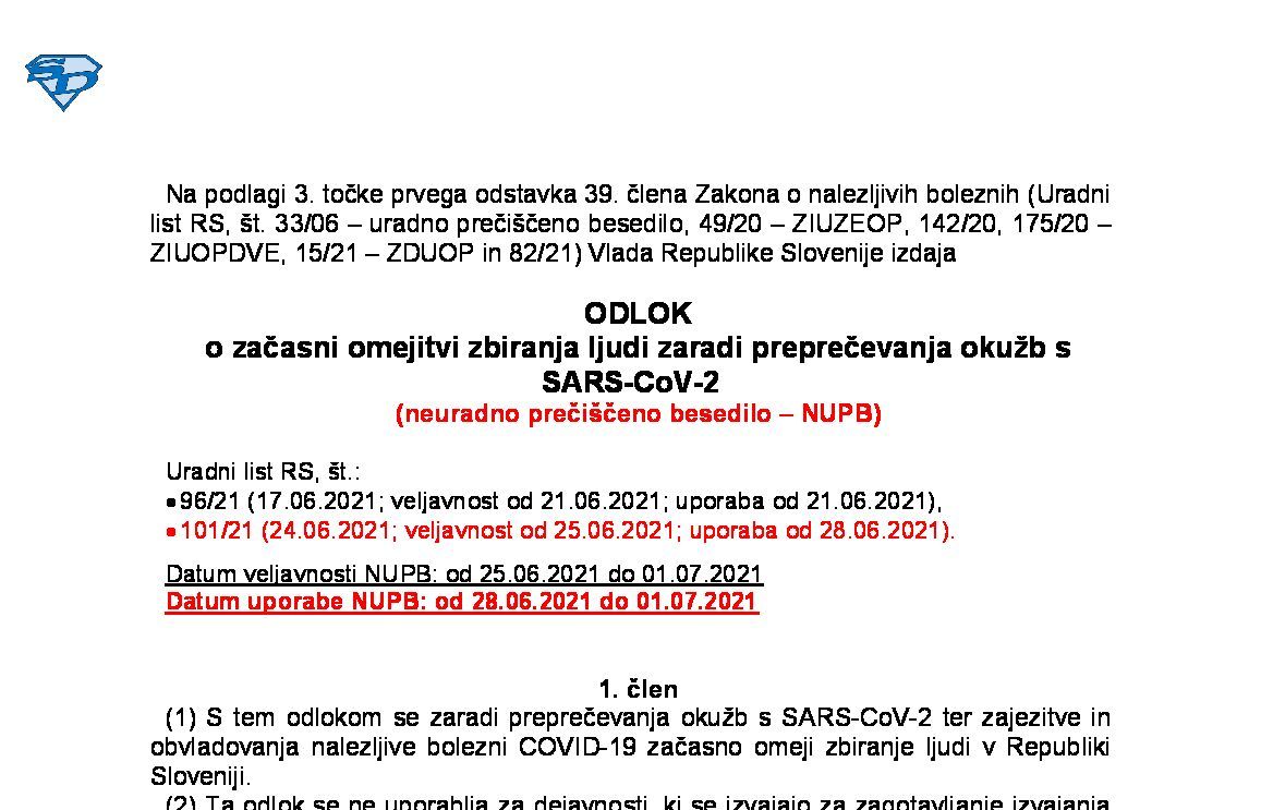 Odlok o začasnih ukrepih za preprečevanje in obvladovanje okužb z nalezljivo boleznijo COVID-19 14.05.2022 30.05.2022 17.05.2022